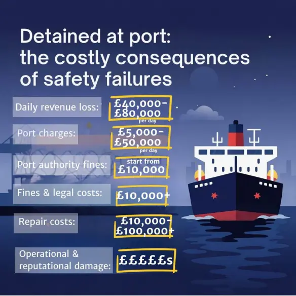 When a ship is detained at port due to safety failings, the consequences can be severe. From missed schedules and mounting fines, to reputational damage and contract breaches, the financial and operational impact quickly adds up.